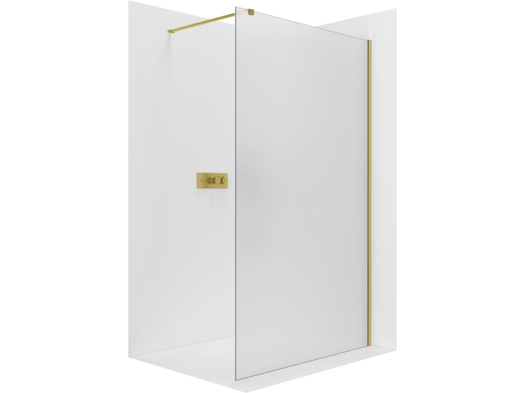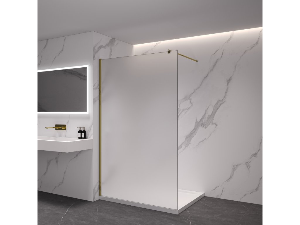 CERANO - Sprchová zástěna Walk-in Onyx Cube L/P - 8 mm - hranatá vzpěra - zlatá kartáčovaná, mléčné sklo - 30x200 cm