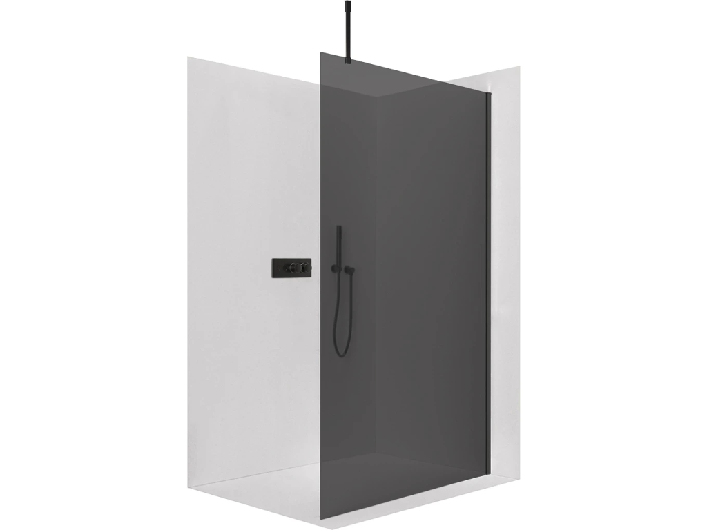 CERANO - Sprchová zástěna Walk-in Onyx Top Cube L/P - 8 mm - hranatá vzpěra - černá matná, grafitové sklo - 30x200 cm