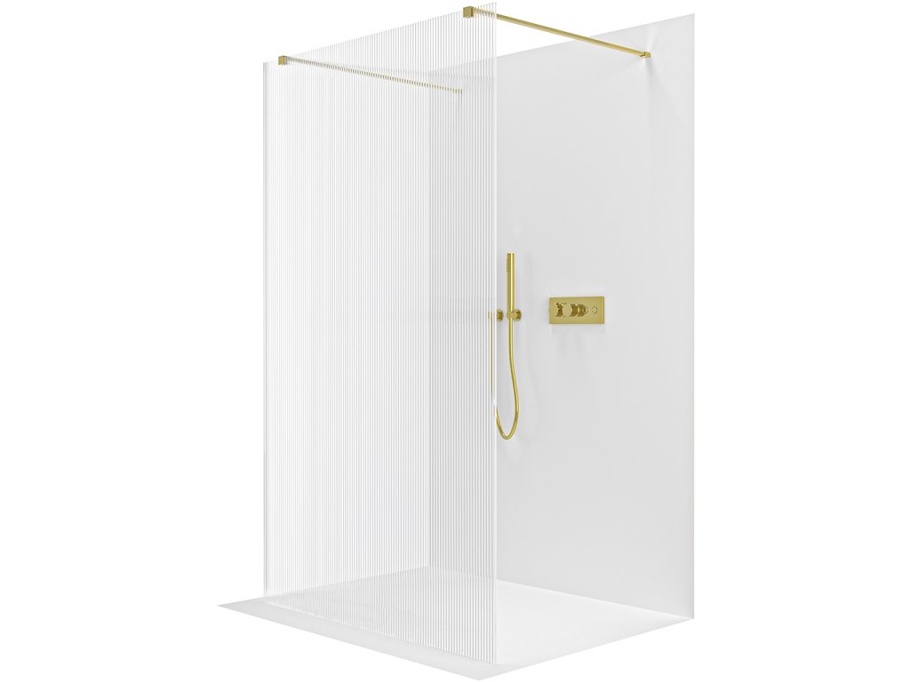 CERANO - Sprchová zástěna Walk-in Onyx Duo L/P - 8 mm - hranatá vzpěra - zlatá kartáčovaná, rýhované sklo - 50x200 cm