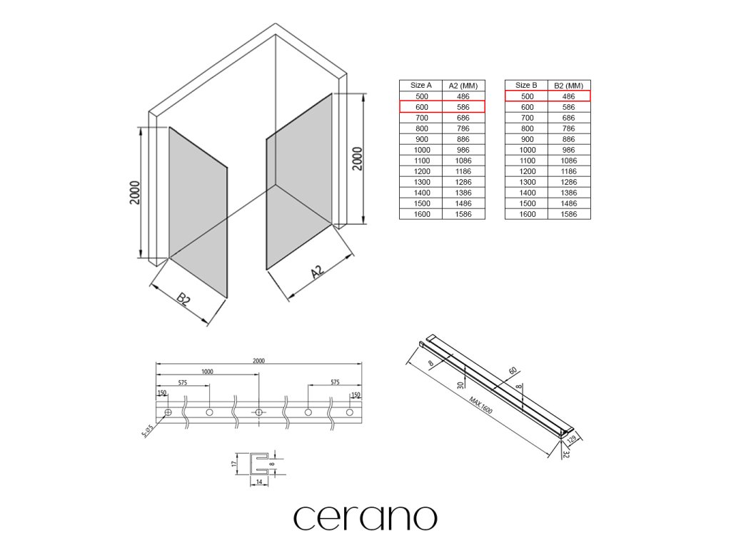 V rámci této série nabízíme širokou škálu rozměrů, abychom uspokojili různé potřeby našich zákazníků. Všechny sprchové kouty, dveře a zástěny značky Cerano jsou plně kompatibilní se sprchovými vaničkami Cerano ve stejných rozměrech, což zajišťuje bezproblémovou instalaci a dokonalé sladění. Sprchový kout lze navíc instalovat flexibilně – buď na odpovídající sprchovou vaničku, nebo přímo na podlahu podle vašich preferencí a možností koupelny.