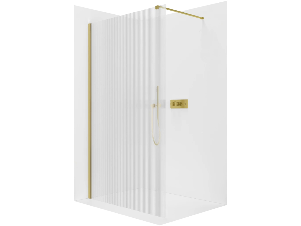 CERANO - Sprchová zástěna Walk-in Onyx Cube L/P - 8 mm - hranatá vzpěra - zlatá, rýhované sklo - 60x200 cm