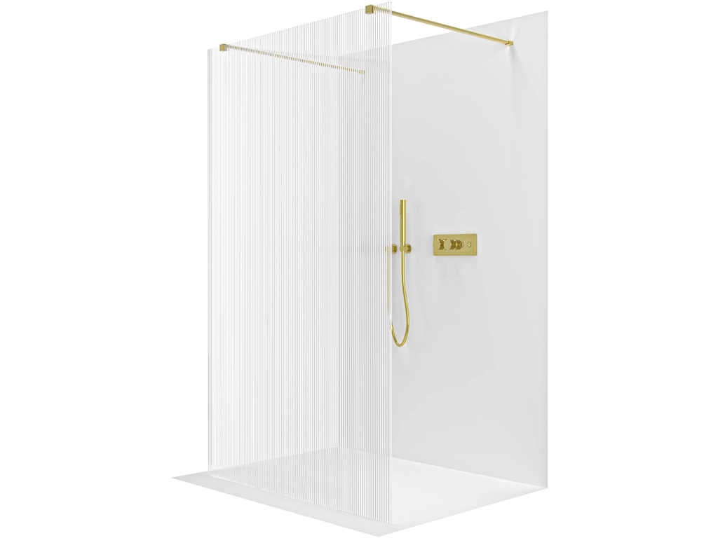 CERANO - Sprchová zástěna Walk-in Onyx Duo L/P - 8 mm - hranatá vzpěra - zlatá, rýhované sklo - 60x200 cm
