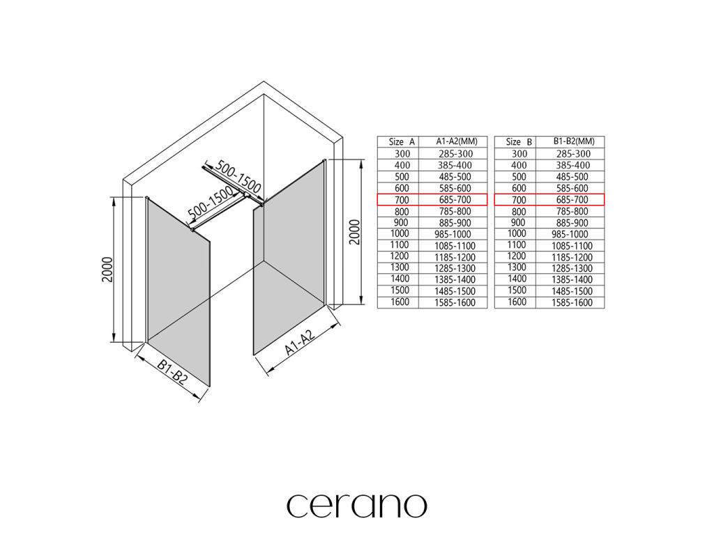 V rámci této série nabízíme širokou škálu rozměrů, abychom uspokojili různé potřeby našich zákazníků. Všechny sprchové kouty, dveře a zástěny značky Cerano jsou plně kompatibilní se sprchovými vaničkami Cerano ve stejných rozměrech, což zajišťuje bezproblémovou instalaci a dokonalé sladění. Sprchový kout lze navíc instalovat flexibilně – buď na odpovídající sprchovou vaničku, nebo přímo na podlahu podle vašich preferencí a možností koupelny.