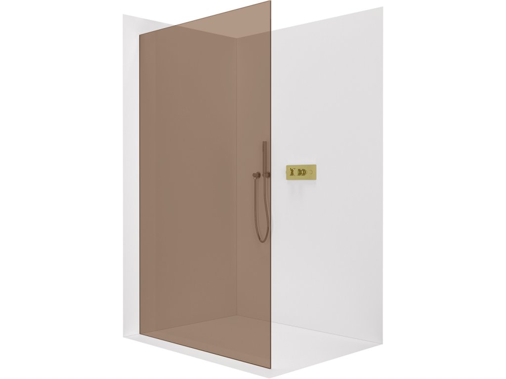 CERANO - Sprchová zástěna Walk-in Crystal L/P - 8 mm - bezvzpěrový systém - zlatá kartáčovaná, bronzové sklo - 80x200 cm