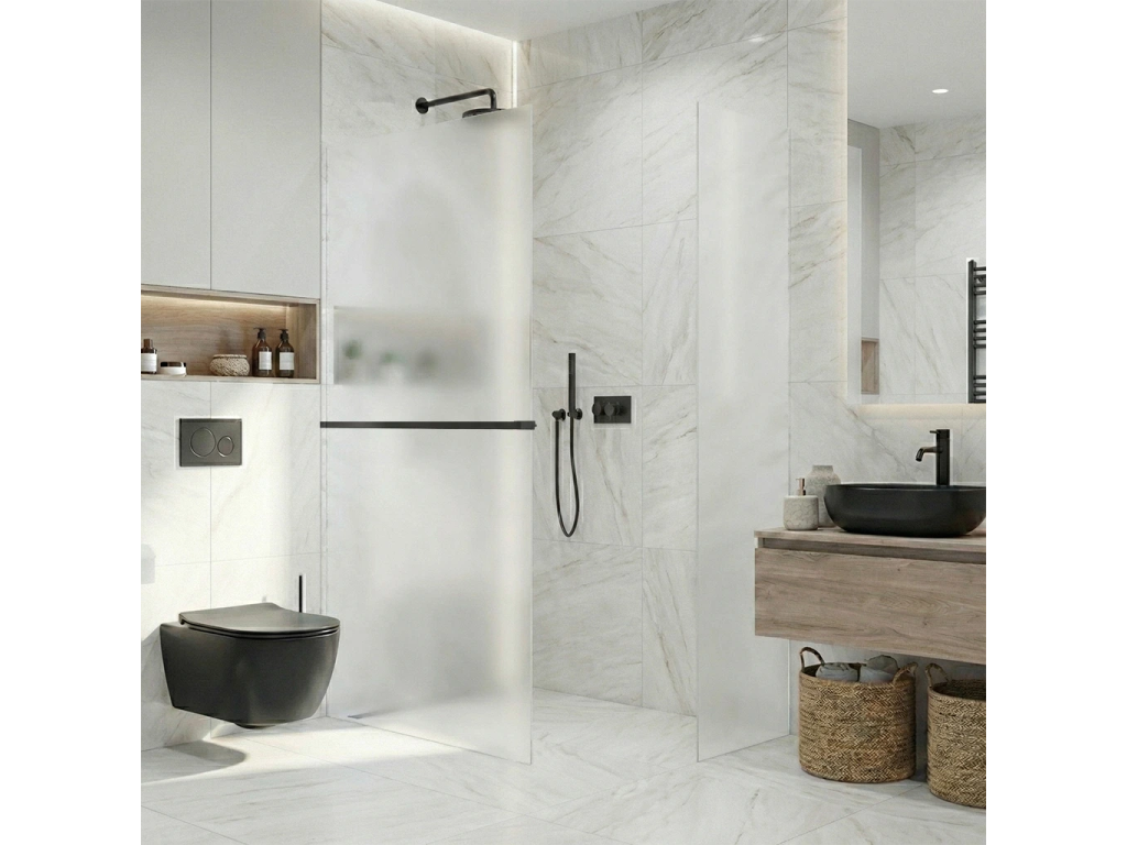 Díky promyšlené konstrukci je sklo uchyceno skrytě do profilů, které lze zapustit zcela nebo částečně ( až 14 mm do obkladů či dlažby). Bez rušivých vzpěr tak vzniká čisté, elegantní řešení, které podtrhne moderní vzhled koupelny a dodá prostoru maximální vizuální lehkost.
