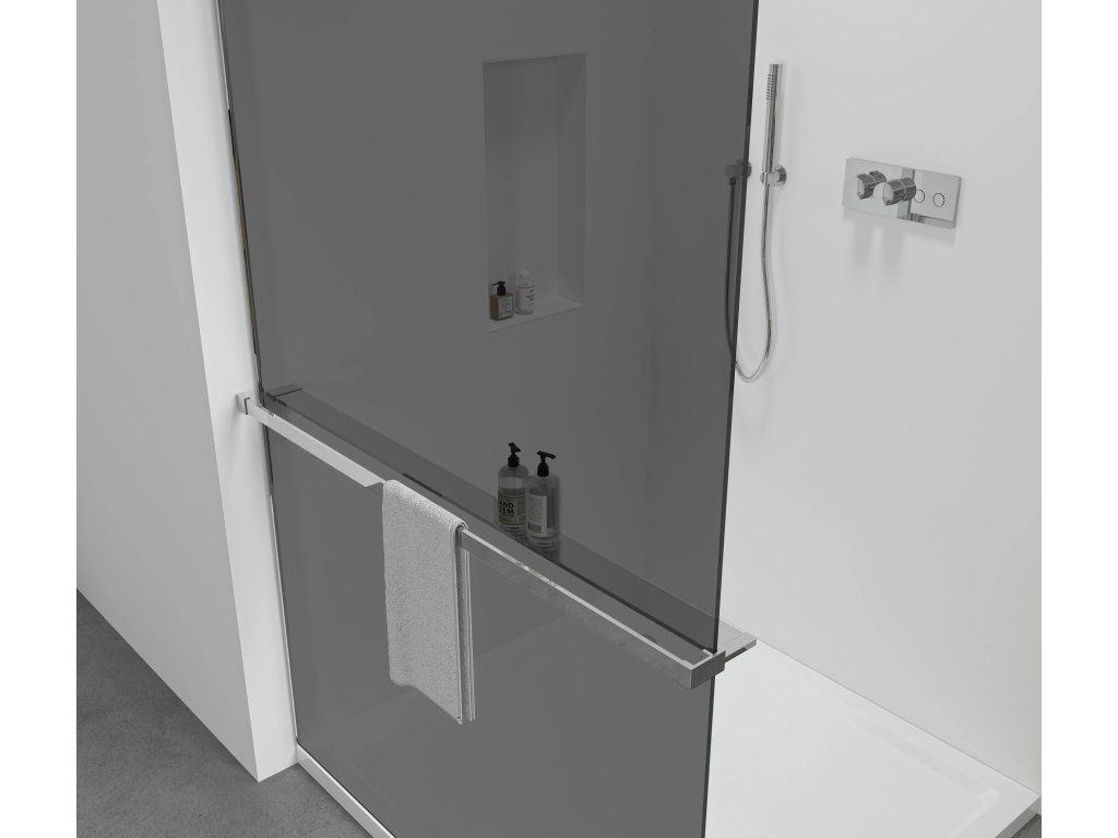 Chytré řešení 2v1 pro sprchové zástěny. Z vnější strany držák na ručníky, zevnitř praktická polička na kosmetiku a drobnosti – vše hned po ruce. Vhodné pro sprchové zástěny s maximální tloušťkou skla 8 mm. Nastavitelná šířka od 30 do 160 cm podle typu zástěny. Úspora místa, moderní vzhled a praktické využití v jednom.