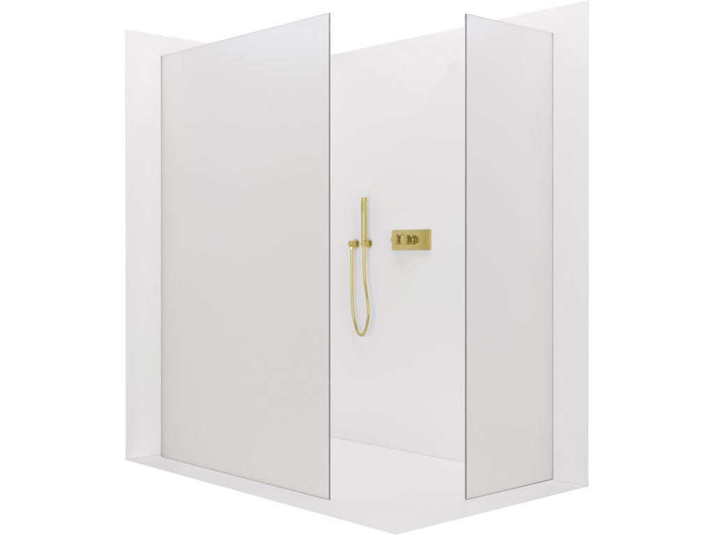 CERANO - Sprchová zástěna Walk-in Crystal T L/P - 8 mm - bezvzpěrový systém - zlatá kartáčovaná, mléčné sklo - 80x50x200 cm