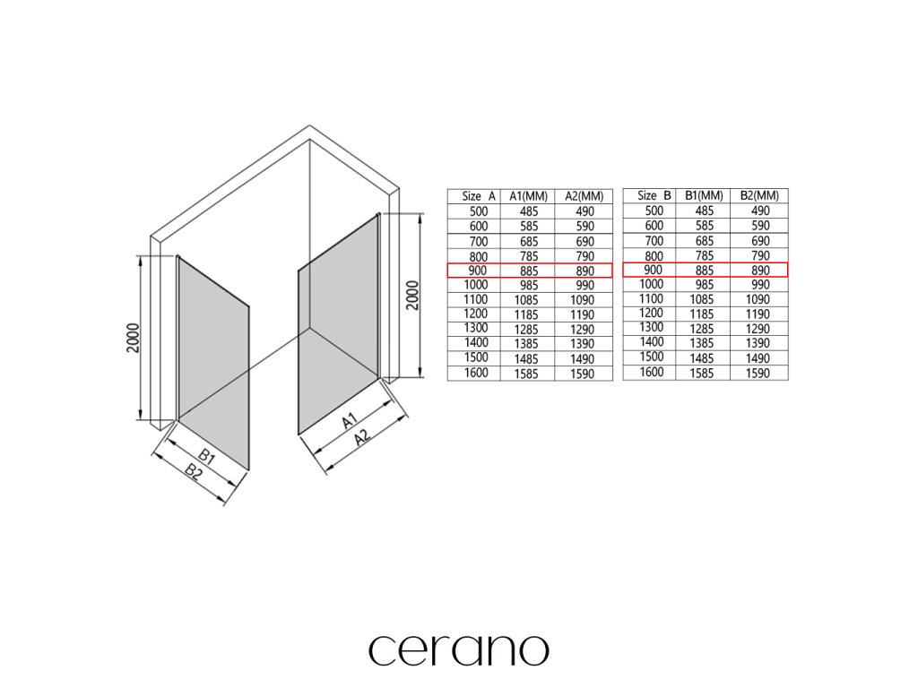V rámci této série nabízíme širokou škálu rozměrů, abychom uspokojili různé potřeby našich zákazníků. Všechny sprchové kouty, dveře a zástěny značky Cerano jsou plně kompatibilní se sprchovými vaničkami Cerano ve stejných rozměrech, což zajišťuje bezproblémovou instalaci a dokonalé sladění. Sprchový kout lze navíc instalovat flexibilně – buď na odpovídající sprchovou vaničku, nebo přímo na podlahu podle vašich preferencí a možností koupelny.
