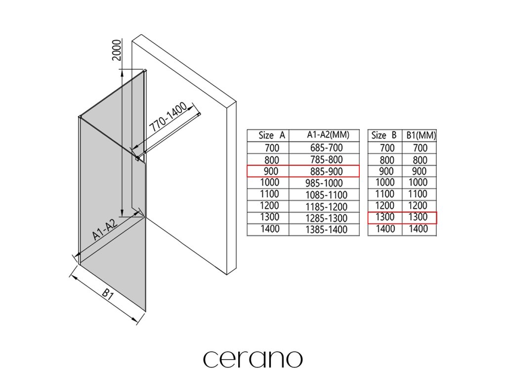 V rámci této série nabízíme širokou škálu rozměrů, abychom uspokojili různé potřeby našich zákazníků. Všechny sprchové kouty, dveře a zástěny značky Cerano jsou plně kompatibilní se sprchovými vaničkami Cerano ve stejných rozměrech, což zajišťuje bezproblémovou instalaci a dokonalé sladění. Sprchový kout lze navíc instalovat flexibilně – buď na odpovídající sprchovou vaničku, nebo přímo na podlahu podle vašich preferencí a možností koupelny.