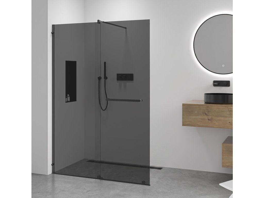 CERANO - Sprchová zástěna Walk-in Medin L/P - 8 mm - černá matná, grafitové sklo - 150x195 cm - dvoudílná posuvná