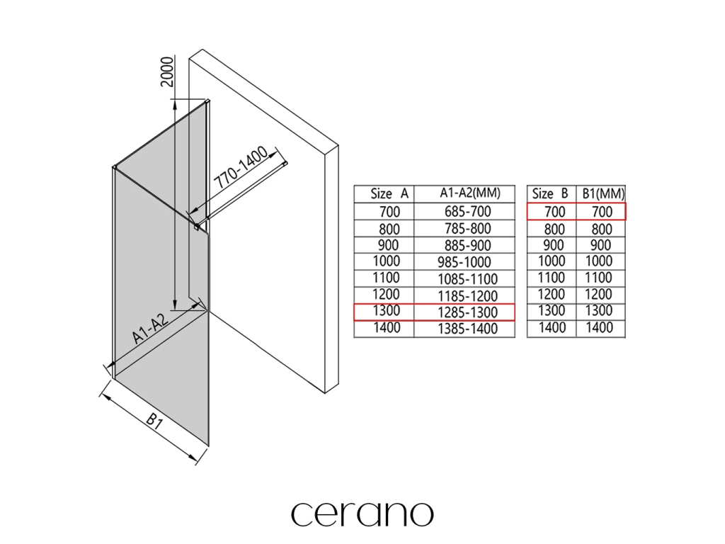 V rámci této série nabízíme širokou škálu rozměrů, abychom uspokojili různé potřeby našich zákazníků. Všechny sprchové kouty, dveře a zástěny značky Cerano jsou plně kompatibilní se sprchovými vaničkami Cerano ve stejných rozměrech, což zajišťuje bezproblémovou instalaci a dokonalé sladění. Sprchový kout lze navíc instalovat flexibilně – buď na odpovídající sprchovou vaničku, nebo přímo na podlahu podle vašich preferencí a možností koupelny.
