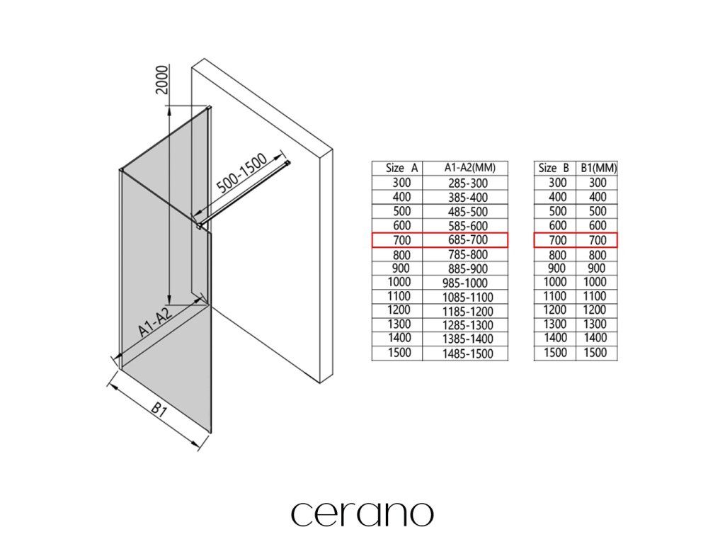 V rámci této série nabízíme širokou škálu rozměrů, abychom uspokojili různé potřeby našich zákazníků. Všechny sprchové kouty, dveře a zástěny značky Cerano jsou plně kompatibilní se sprchovými vaničkami Cerano ve stejných rozměrech, což zajišťuje bezproblémovou instalaci a dokonalé sladění. Sprchový kout lze navíc instalovat flexibilně – buď na odpovídající sprchovou vaničku, nebo přímo na podlahu podle vašich preferencí a možností koupelny.