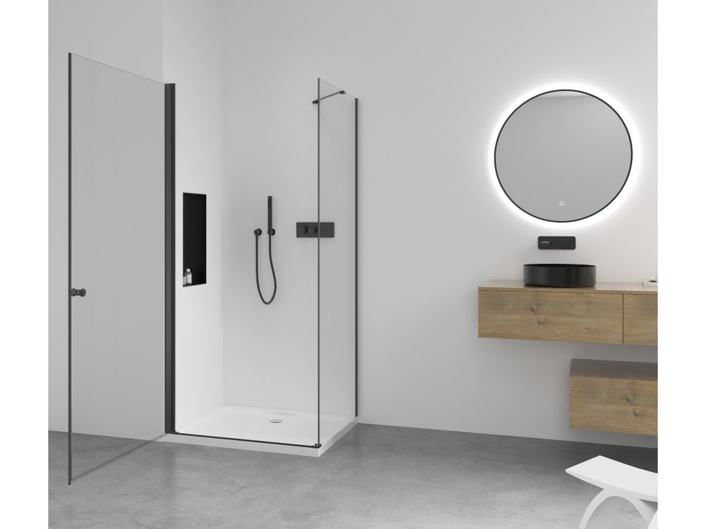 Dveře využívají křídlový systém otevírání, který je ideální pro moderní koupelny s dostatkem prostoru pro otevření dveřního křídla. Dveře jsou zavěšeny na zapuštěných pantech se systémem pneumatického přizvednutí.