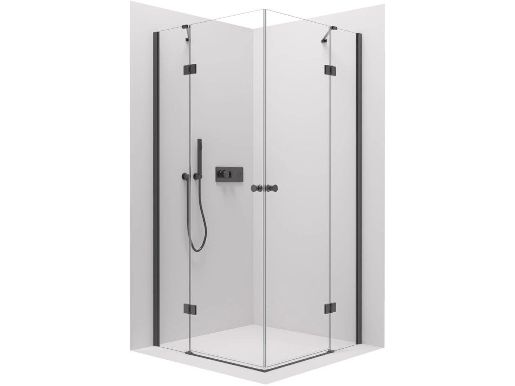 CERANO - Sprchový kout Marino Duo L/P - 6 mm - černá matná, transparentní sklo - 100x100x190 cm - pantový