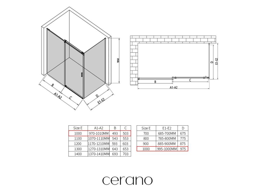 V rámci této série nabízíme širokou škálu rozměrů, abychom uspokojili různé potřeby našich zákazníků. Všechny sprchové kouty, dveře a zástěny značky CERANO jsou plně kompatibilní se sprchovými vaničkami CERANO ve stejných rozměrech, což zajišťuje bezproblémovou instalaci a dokonalé sladění. Sprchový kout lze navíc instalovat flexibilně – buď na odpovídající sprchovou vaničku, nebo přímo na podlahu podle vašich preferencí a možností koupelny.
