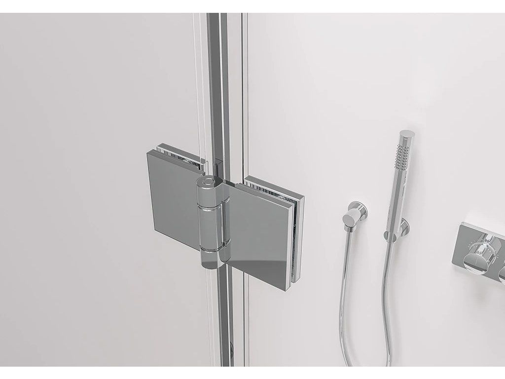 Dveře sprchového koutu jsou osazeny panty a otevírají se pouze směrem ven. Tento způsob otevírání vyžaduje určitý prostor pro plné otevření dveří, což je třeba zvážit při plánování.