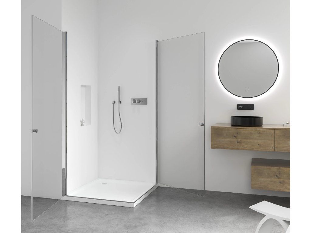 Dveře využívají křídlový systém otevírání, který je ideální pro moderní koupelny s dostatkem prostoru pro otevření dveřního křídla. Dveře jsou zavěšeny na zapuštěných pantech se systémem pneumatického přizvednutí.