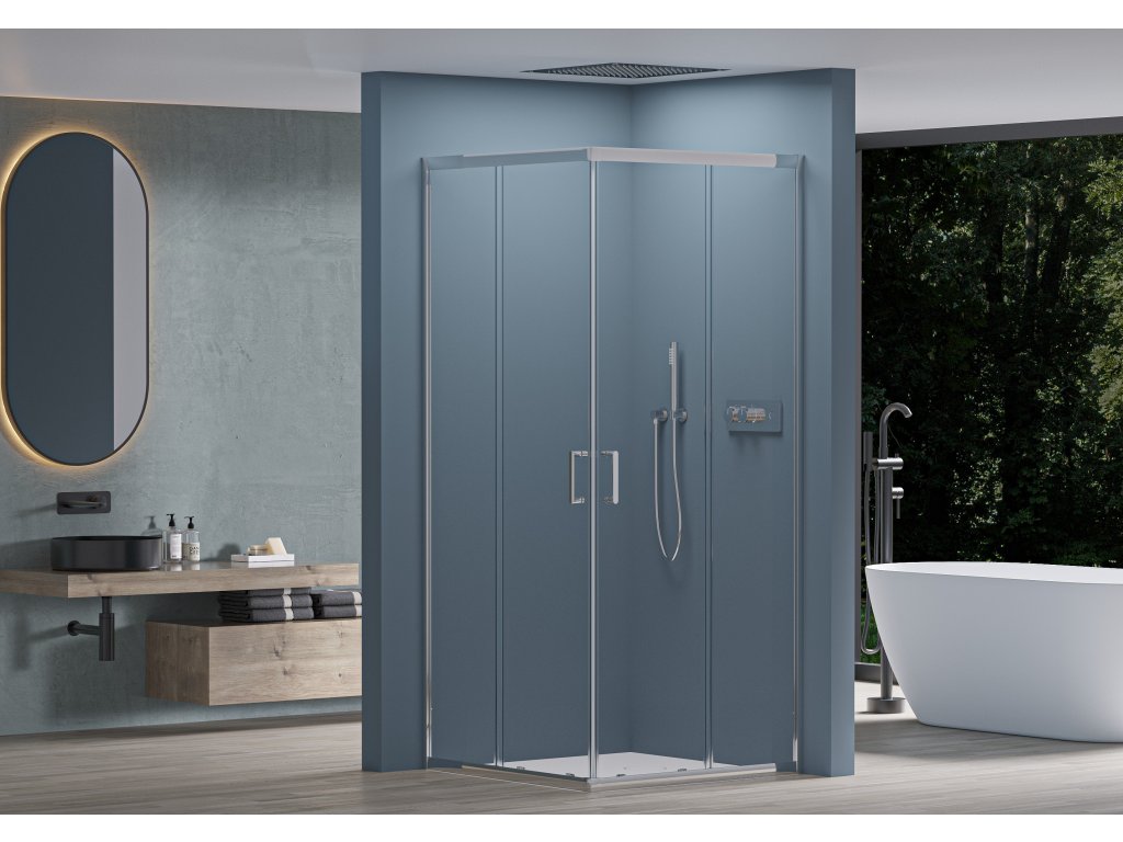 Černé prvky dodávají moderní a univerzální vzhled, který dobře vypadá v jakémkoli stylu vaší koupelny. Sprchový kout má univerzální profil, který lze namontovat vpravo nebo vlevo.