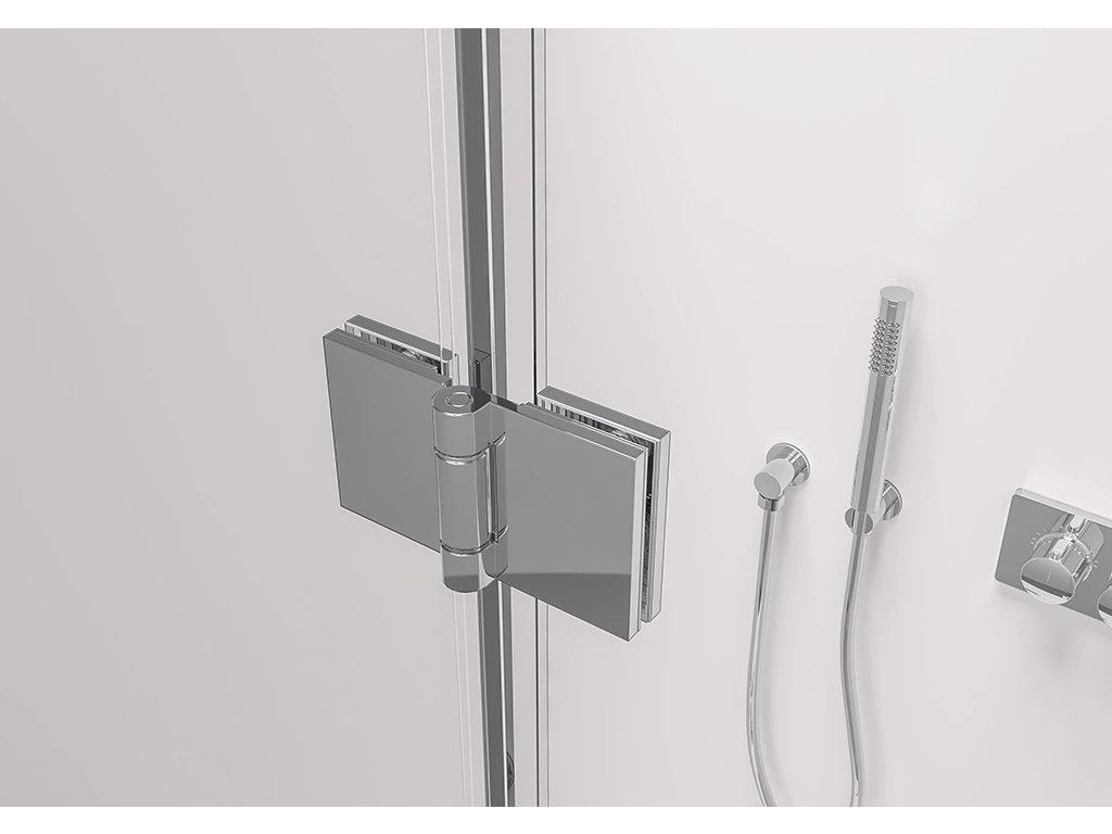 Dveře sprchového koutu jsou osazeny panty a otevírají se pouze směrem ven. Tento způsob otevírání vyžaduje určitý prostor pro plné otevření dveří, což je třeba zvážit při plánování.