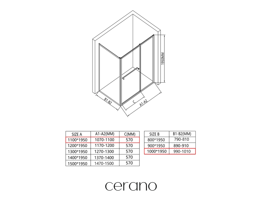 V rámci této série nabízíme širokou škálu rozměrů, abychom uspokojili různé potřeby našich zákazníků. Všechny sprchové kouty, dveře a zástěny značky CERANO jsou plně kompatibilní se sprchovými vaničkami CERANO ve stejných rozměrech, což zajišťuje bezproblémovou instalaci a dokonalé sladění. Sprchový kout lze navíc instalovat flexibilně – buď na odpovídající sprchovou vaničku, nebo přímo na podlahu podle vašich preferencí a možností koupelny.