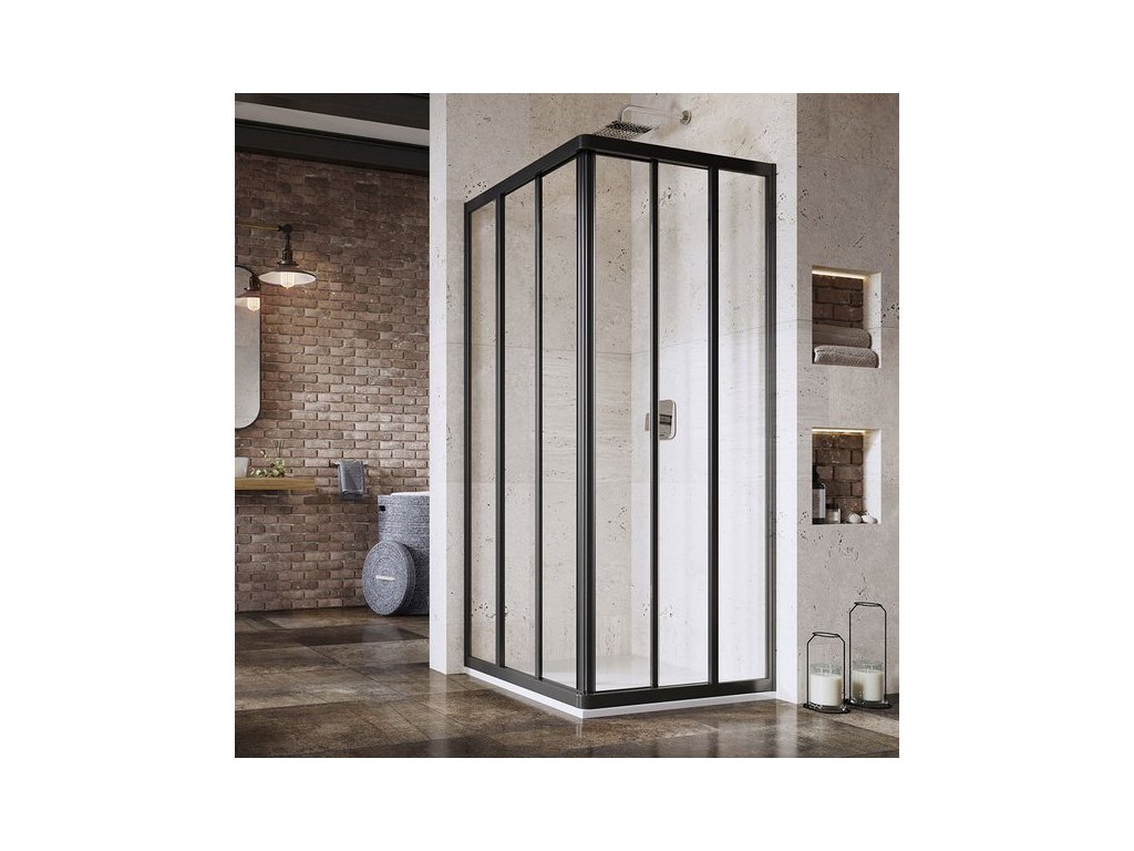 Ravak - Sprchový kout rohový posuvný šestidílný se vstupem z rohu Supernova ASRV3-90 - černá, transparentní sklo