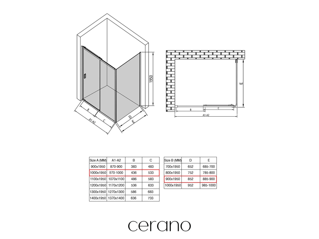 V rámci této série nabízíme širokou škálu rozměrů, abychom uspokojili různé potřeby našich zákazníků. Všechny sprchové kouty, dveře a zástěny značky CERANO jsou plně kompatibilní se sprchovými vaničkami CERANO ve stejných rozměrech, což zajišťuje bezproblémovou instalaci a dokonalé sladění. Sprchový kout lze navíc instalovat flexibilně – buď na odpovídající sprchovou vaničku, nebo přímo na podlahu podle vašich preferencí a možností koupelny.