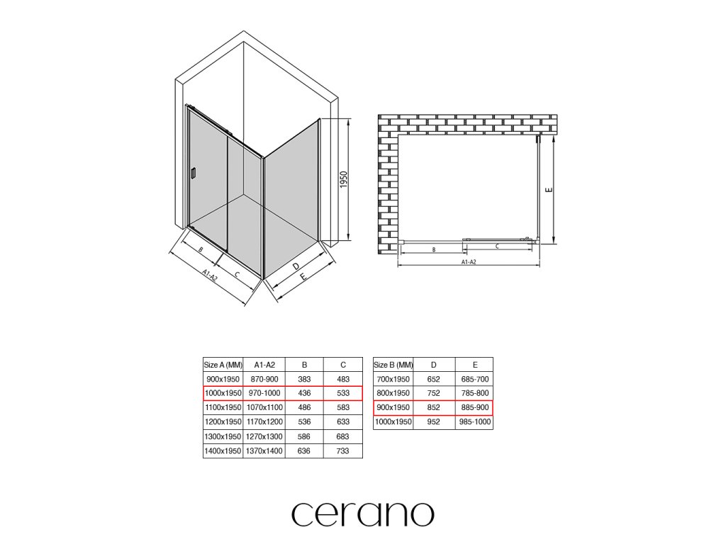 V rámci této série nabízíme širokou škálu rozměrů, abychom uspokojili různé potřeby našich zákazníků. Všechny sprchové kouty, dveře a zástěny značky CERANO jsou plně kompatibilní se sprchovými vaničkami CERANO ve stejných rozměrech, což zajišťuje bezproblémovou instalaci a dokonalé sladění. Sprchový kout lze navíc instalovat flexibilně – buď na odpovídající sprchovou vaničku, nebo přímo na podlahu podle vašich preferencí a možností koupelny.