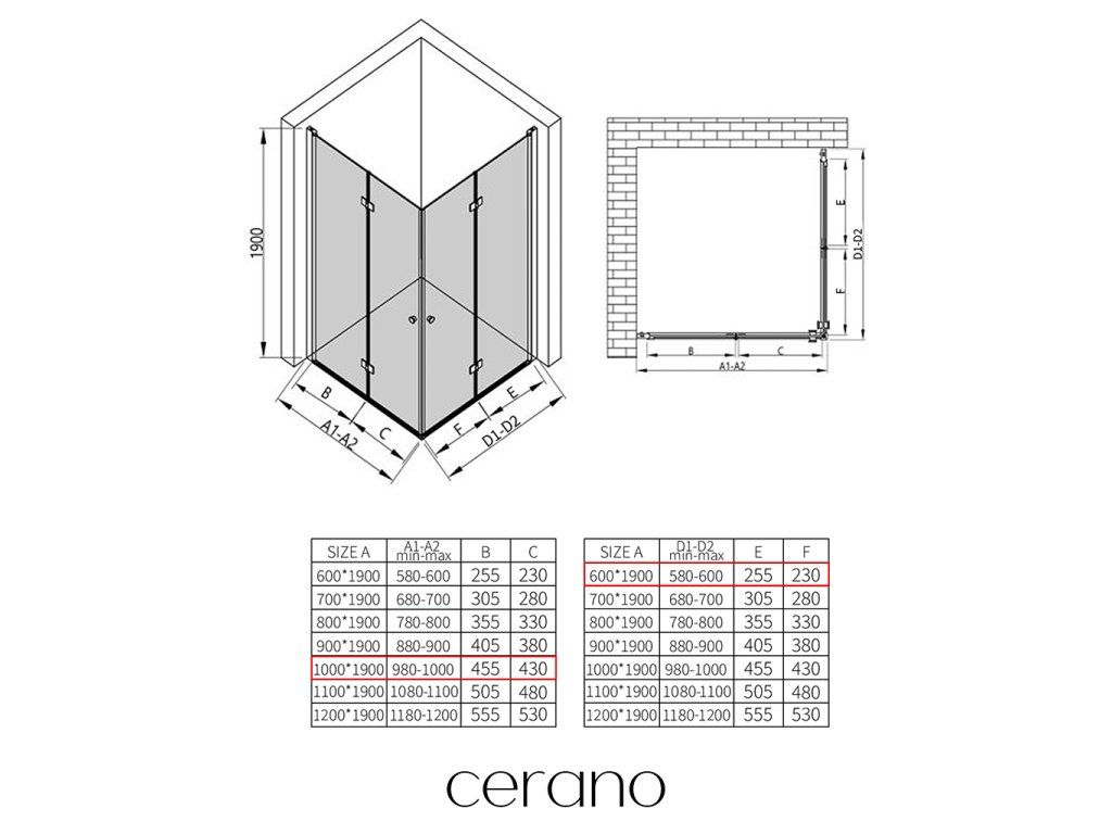 V rámci této série nabízíme širokou škálu rozměrů, abychom uspokojili různé potřeby našich zákazníků. Všechny sprchové kouty, dveře a zástěny značky Cerano jsou plně kompatibilní se sprchovými vaničkami Cerano ve stejných rozměrech, což zajišťuje bezproblémovou instalaci a dokonalé sladění. Sprchový kout lze navíc instalovat flexibilně – buď na odpovídající sprchovou vaničku, nebo přímo na podlahu podle vašich preferencí a možností koupelny.