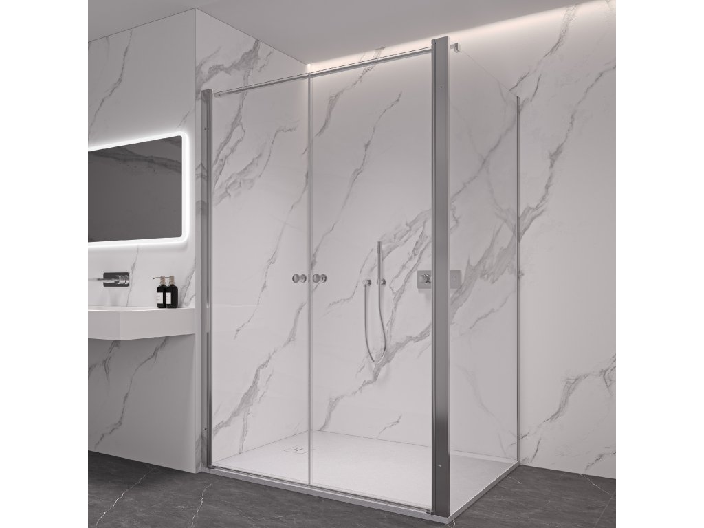 Dveře využívají křídlový systém otevírání, který je ideální pro moderní koupelny s dostatkem prostoru pro otevření dveřního křídla. Dveře jsou zavěšeny na zapuštěných pantech se systémem pneumatického přizvednutí.