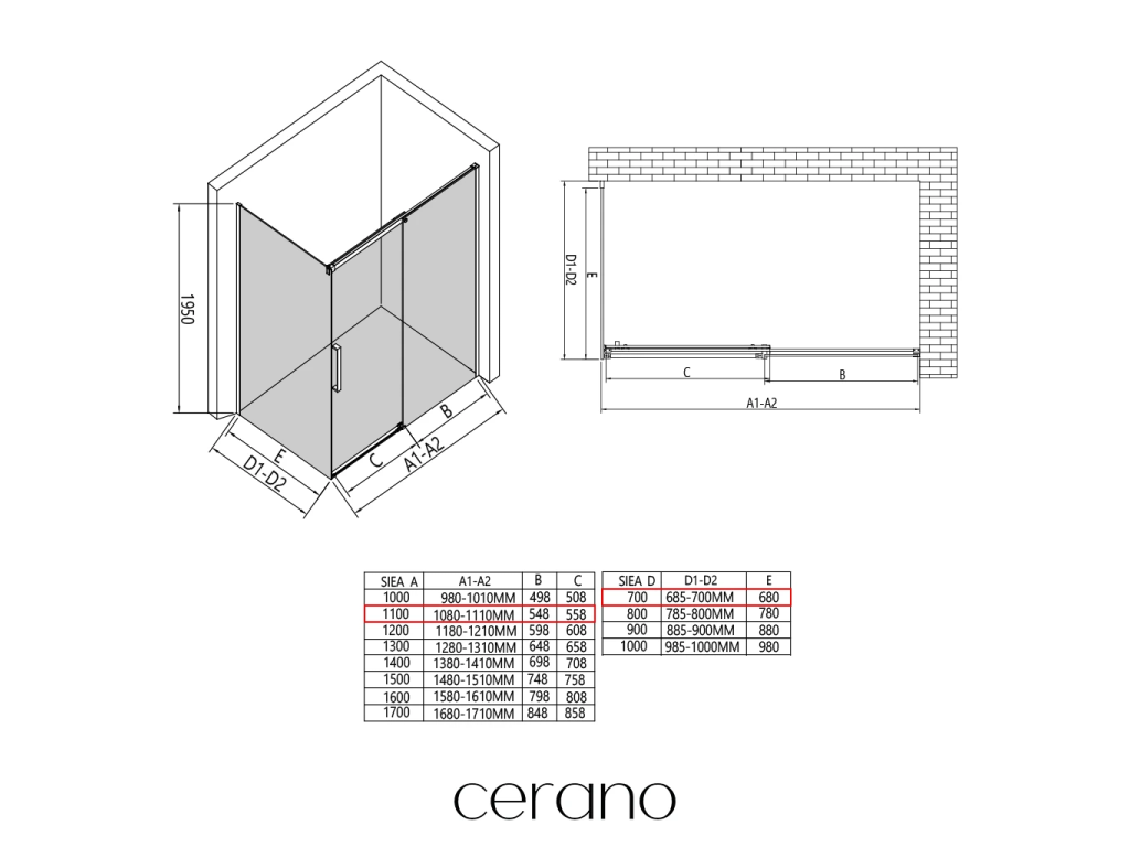 V rámci této série nabízíme širokou škálu rozměrů, abychom uspokojili různé potřeby našich zákazníků. Všechny sprchové kouty, dveře a zástěny značky CERANO jsou plně kompatibilní se sprchovými vaničkami CERANO ve stejných rozměrech, což zajišťuje bezproblémovou instalaci a dokonalé sladění. Sprchový kout lze navíc instalovat flexibilně – buď na odpovídající sprchovou vaničku, nebo přímo na podlahu podle vašich preferencí a možností koupelny.