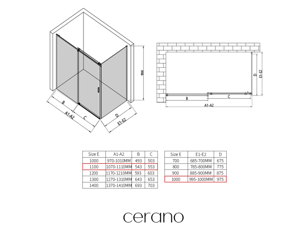V rámci této série nabízíme širokou škálu rozměrů, abychom uspokojili různé potřeby našich zákazníků. Všechny sprchové kouty, dveře a zástěny značky CERANO jsou plně kompatibilní se sprchovými vaničkami CERANO ve stejných rozměrech, což zajišťuje bezproblémovou instalaci a dokonalé sladění. Sprchový kout lze navíc instalovat flexibilně – buď na odpovídající sprchovou vaničku, nebo přímo na podlahu podle vašich preferencí a možností koupelny.