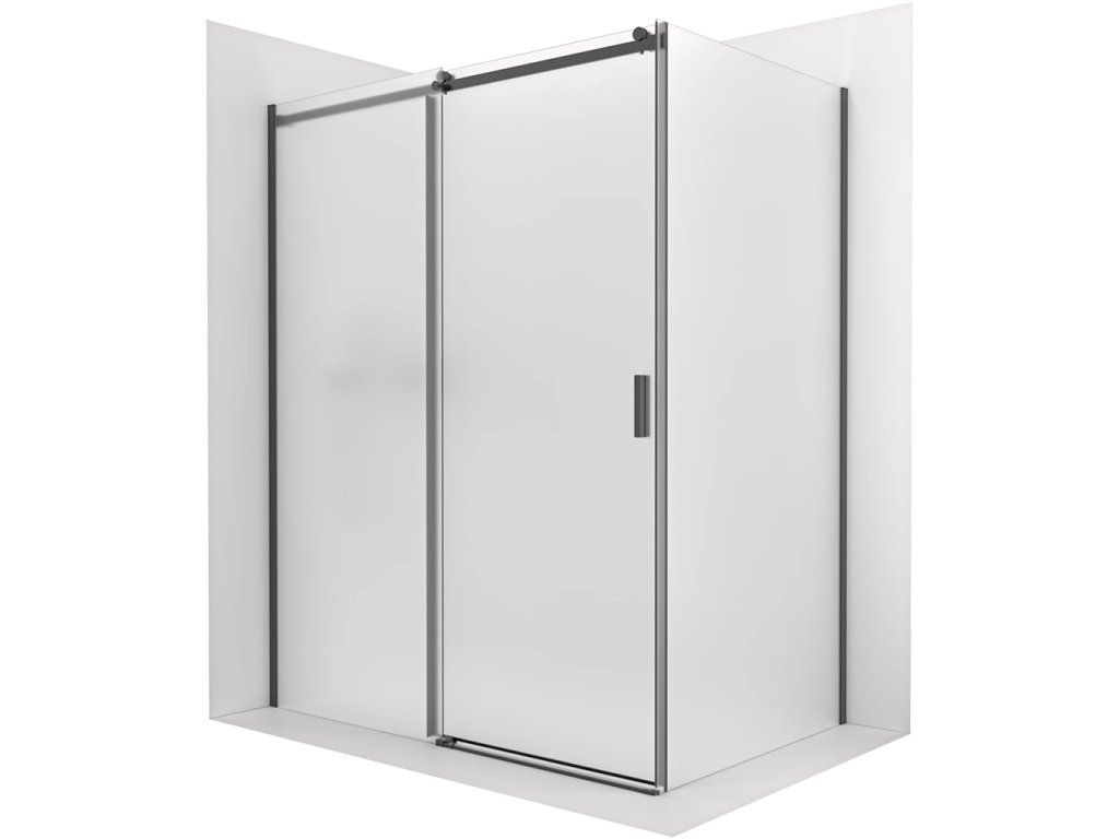 CERANO - Sprchový kout Santoro - levá - 6 mm - černá matná, mléčné sklo - 140x100 cm - posuvný