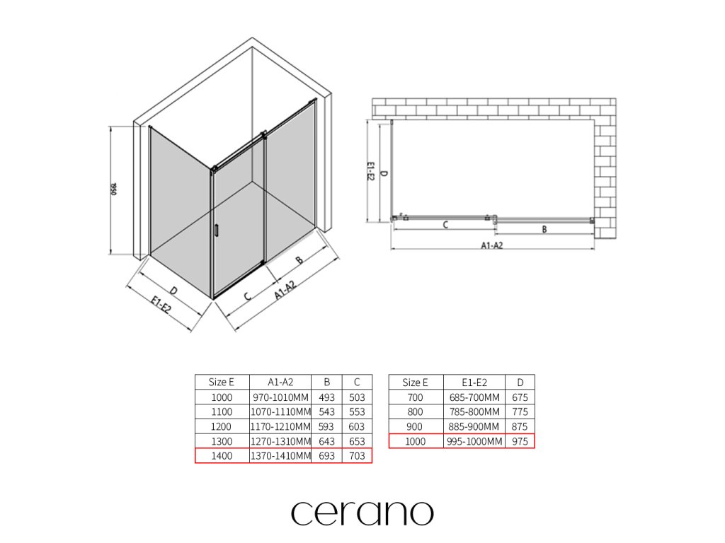 V rámci této série nabízíme širokou škálu rozměrů, abychom uspokojili různé potřeby našich zákazníků. Všechny sprchové kouty, dveře a zástěny značky CERANO jsou plně kompatibilní se sprchovými vaničkami CERANO ve stejných rozměrech, což zajišťuje bezproblémovou instalaci a dokonalé sladění. Sprchový kout lze navíc instalovat flexibilně – buď na odpovídající sprchovou vaničku, nebo přímo na podlahu podle vašich preferencí a možností koupelny.
