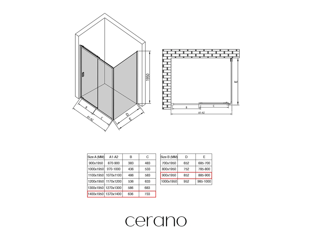 V rámci této série nabízíme širokou škálu rozměrů, abychom uspokojili různé potřeby našich zákazníků. Všechny sprchové kouty, dveře a zástěny značky CERANO jsou plně kompatibilní se sprchovými vaničkami CERANO ve stejných rozměrech, což zajišťuje bezproblémovou instalaci a dokonalé sladění. Sprchový kout lze navíc instalovat flexibilně – buď na odpovídající sprchovou vaničku, nebo přímo na podlahu podle vašich preferencí a možností koupelny.