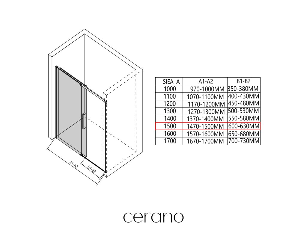 V rámci této série nabízíme širokou škálu rozměrů, abychom uspokojili různé potřeby našich zákazníků. Všechny sprchové kouty, dveře a zástěny značky CERANO jsou plně kompatibilní se sprchovými vaničkami CERANO ve stejných rozměrech, což zajišťuje bezproblémovou instalaci a dokonalé sladění. Sprchový kout lze navíc instalovat flexibilně – buď na odpovídající sprchovou vaničku, nebo přímo na podlahu podle vašich preferencí a možností koupelny.
