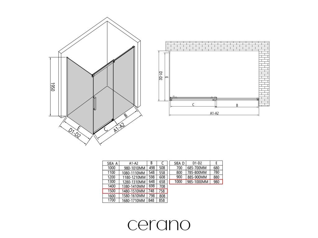V rámci této série nabízíme širokou škálu rozměrů, abychom uspokojili různé potřeby našich zákazníků. Všechny sprchové kouty, dveře a zástěny značky CERANO jsou plně kompatibilní se sprchovými vaničkami CERANO ve stejných rozměrech, což zajišťuje bezproblémovou instalaci a dokonalé sladění. Sprchový kout lze navíc instalovat flexibilně – buď na odpovídající sprchovou vaničku, nebo přímo na podlahu podle vašich preferencí a možností koupelny.