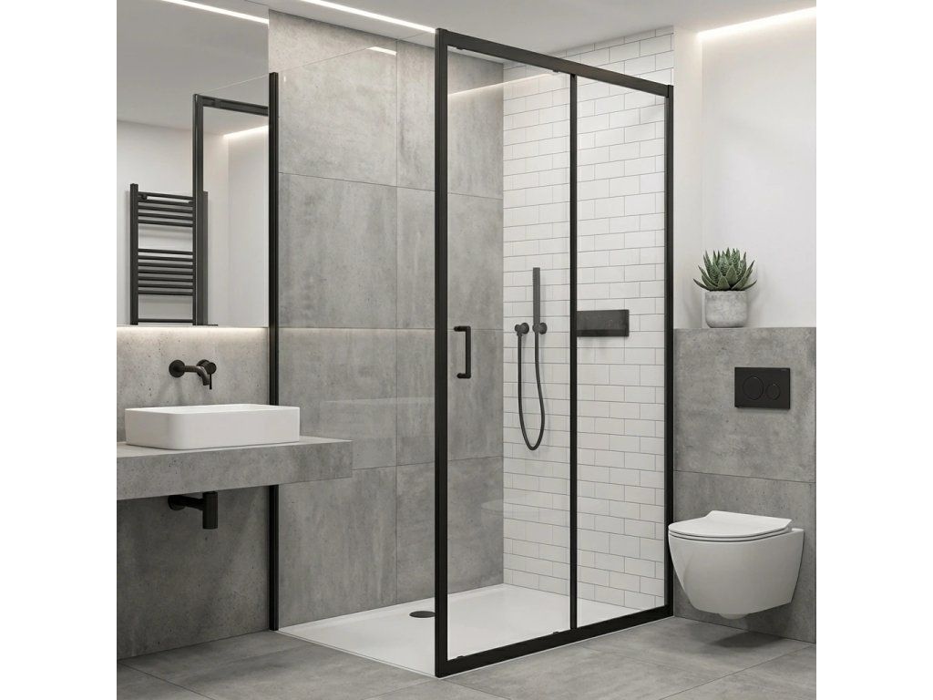 CERANO - Sprchový kout Orlano L/P - 5 mm - černá matná, transparentní sklo - 80x100x195 cm - posuvný