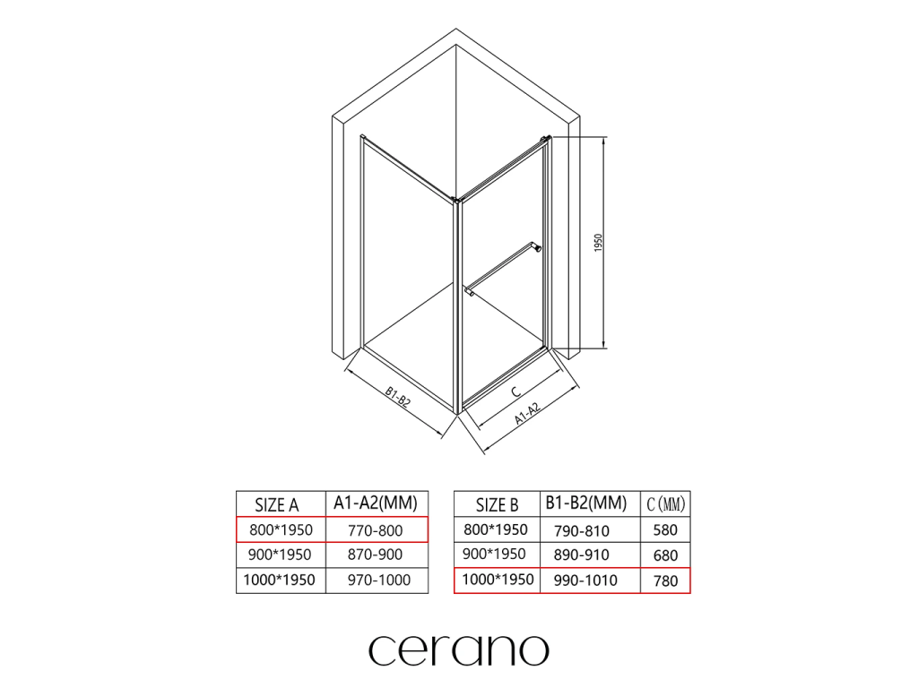 V rámci této série nabízíme širokou škálu rozměrů, abychom uspokojili různé potřeby našich zákazníků. Všechny sprchové kouty, dveře a zástěny značky CERANO jsou plně kompatibilní se sprchovými vaničkami CERANO ve stejných rozměrech, což zajišťuje bezproblémovou instalaci a dokonalé sladění. Sprchový kout lze navíc instalovat flexibilně – buď na odpovídající sprchovou vaničku, nebo přímo na podlahu podle vašich preferencí a možností koupelny.