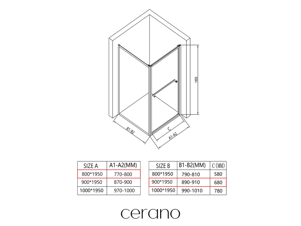 V rámci této série nabízíme širokou škálu rozměrů, abychom uspokojili různé potřeby našich zákazníků. Všechny sprchové kouty, dveře a zástěny značky CERANO jsou plně kompatibilní se sprchovými vaničkami CERANO ve stejných rozměrech, což zajišťuje bezproblémovou instalaci a dokonalé sladění. Sprchový kout lze navíc instalovat flexibilně – buď na odpovídající sprchovou vaničku, nebo přímo na podlahu podle vašich preferencí a možností koupelny.