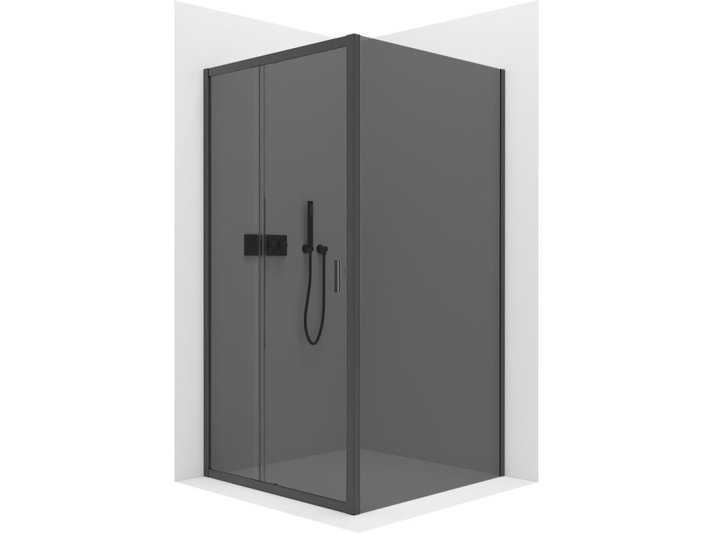 CERANO - Sprchový kout Varone LINE L/P - 6 mm - černá matná, grafitové sklo - 90x80x195 cm - posuvný