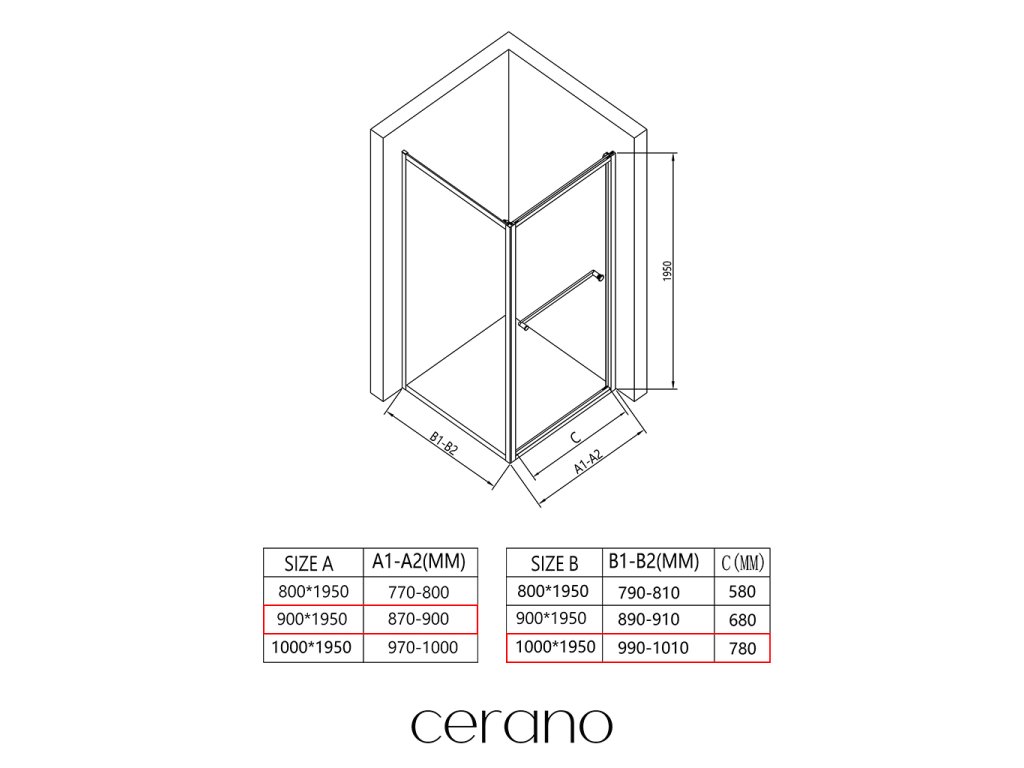 V rámci této série nabízíme širokou škálu rozměrů, abychom uspokojili různé potřeby našich zákazníků. Všechny sprchové kouty, dveře a zástěny značky CERANO jsou plně kompatibilní se sprchovými vaničkami CERANO ve stejných rozměrech, což zajišťuje bezproblémovou instalaci a dokonalé sladění. Sprchový kout lze navíc instalovat flexibilně – buď na odpovídající sprchovou vaničku, nebo přímo na podlahu podle vašich preferencí a možností koupelny.