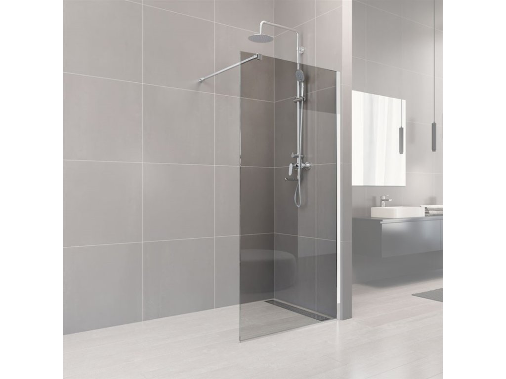 Sprchové stěny WALK IN jsou jediné, které se vám opravdu přizpůsobí. Sestavte si svůj sprchovací prostor na míru. Sprchový kout typu WALK IN si můžete poskládat v několika možných kombinacích. Stabilitu bezpečnostní skla zajišťuje elegantní kovová vzpěra a v případě montáže na zeď i boční stavitelný profil, které nenarušují designovou čistotu celého koutu, nejedná o hermeticky uzavřený výrobek.