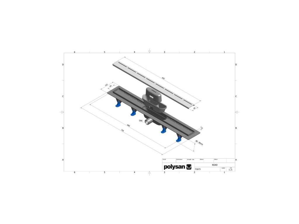 ROAD podlahový žlab s nerezovým roštem, L-720mm, DN40
