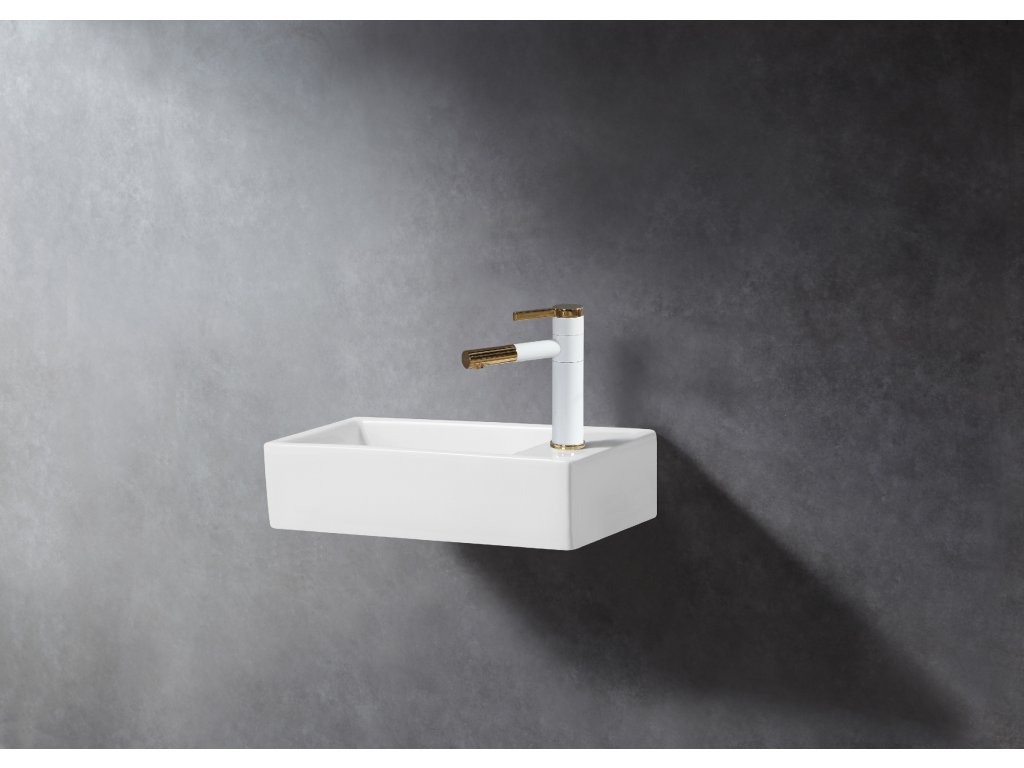 CERANO - Umyvátko keramické Giovanni, závěsné pravé - bílá lesklá - 41x22,5 cm
