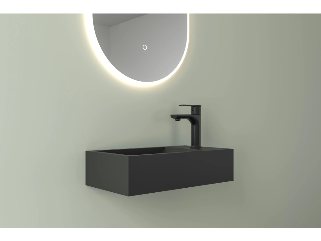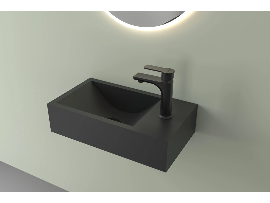 CERANO - Umývátko z litého mramoru Teo - závěsné pravé - černá matná - 40x22 cm