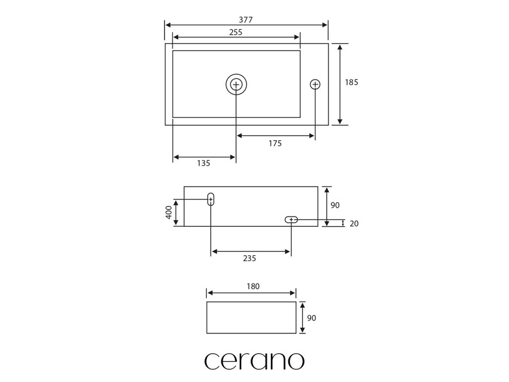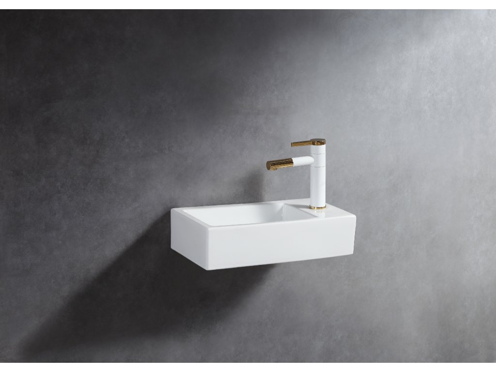 CERANO - Keramické umývátko Roberto, závěsné pravé - bílá lesklá - 37,7x18,5 cm - 2. jakost