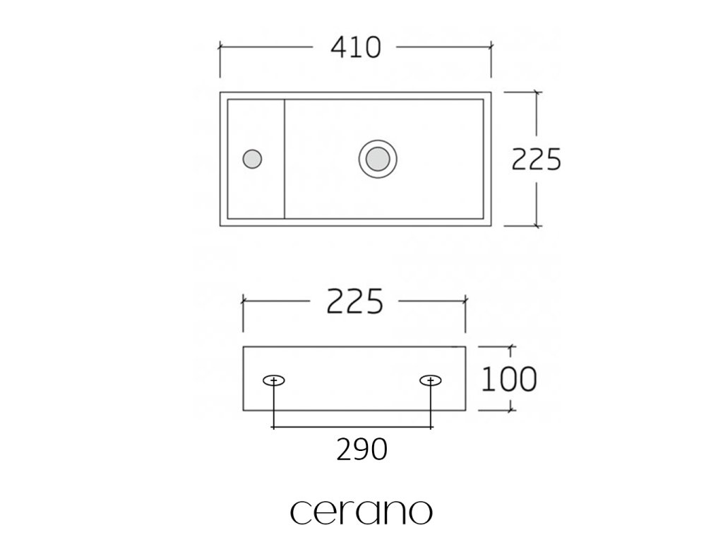 CERANO - Umyvátko keramické Giovanni, závěsné levé - bílá lesklá - 41x22,5 cm - ROZBALENO