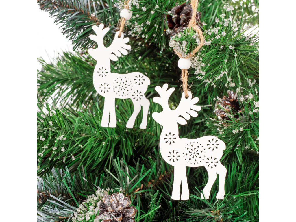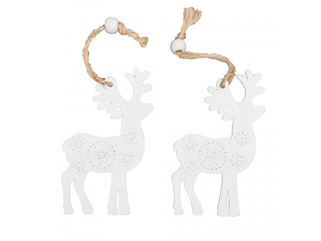 Tutumi - Sada dřevěných vánočních ozdob - sob - bílá - 2 ks