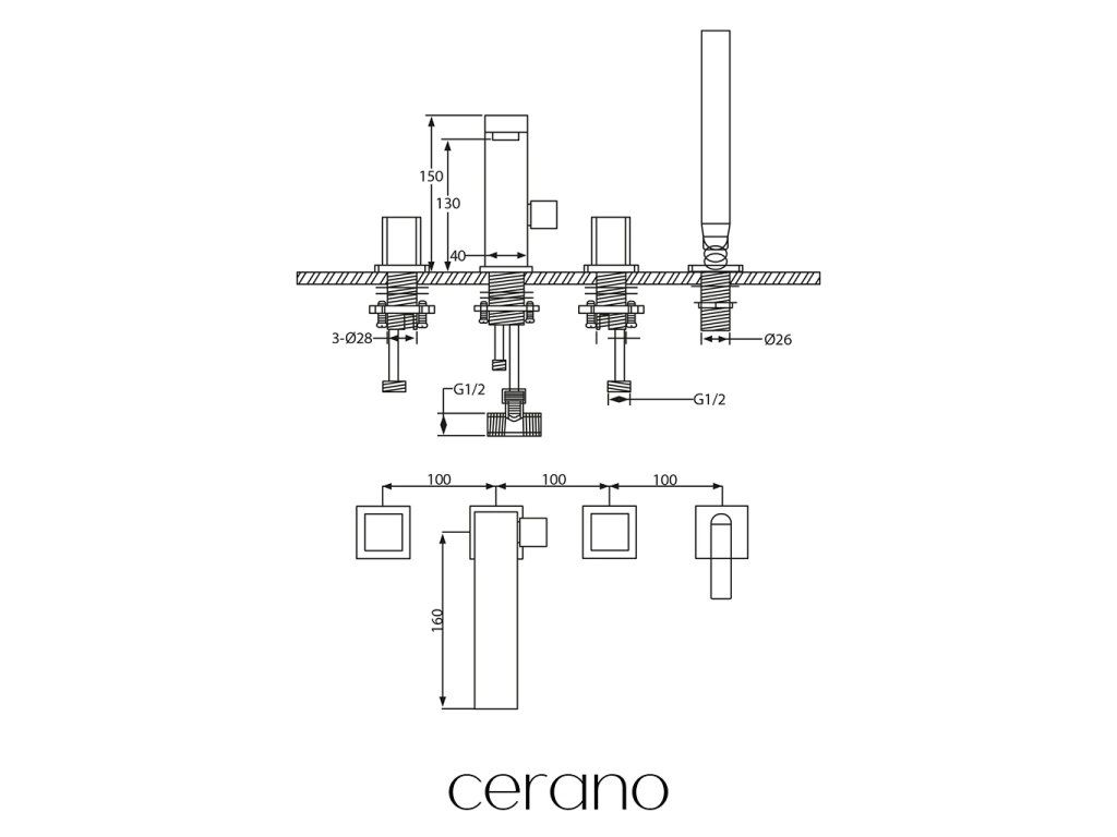CERANO - Vanová páková baterie na okraj vany Forea - černá matná
