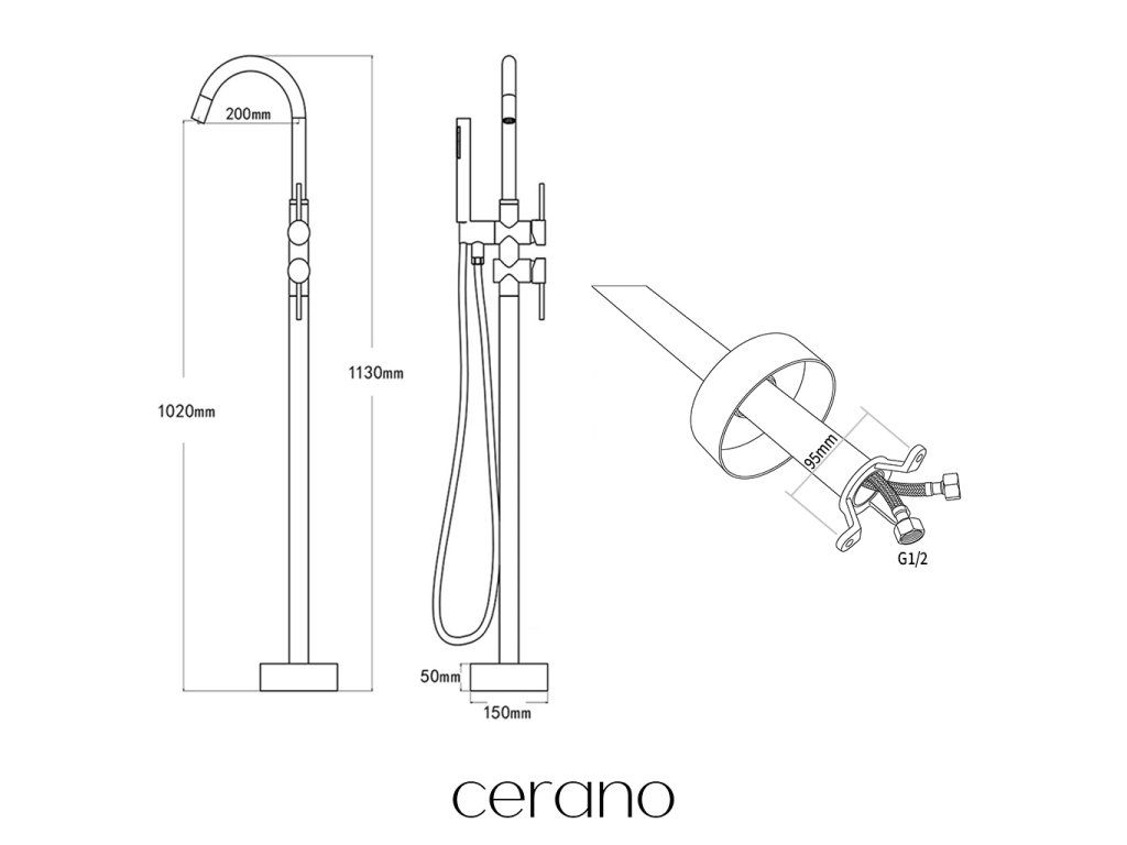 CERANO - Vanová baterie volně stojící Ottavia - černá matná
